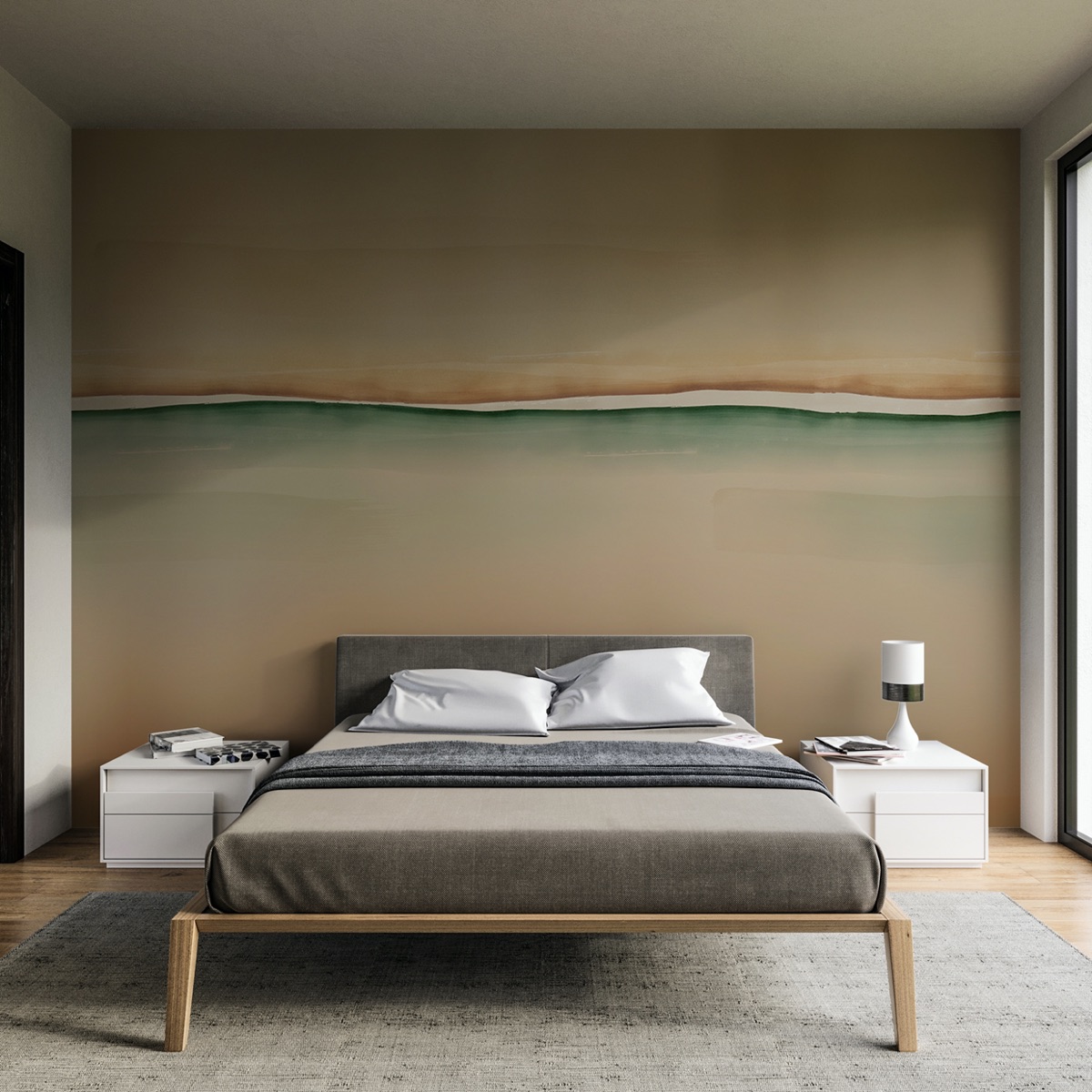 La carta da parati moderna per la camera da letto si distingue per il suo stile essenziale e versatile, capace di evocare un’atmosfera intima e rilassante. Con tonalità neutre, contrasti raffinati e design minimalisti, trasforma lo spazio in un ambiente accogliente e di tendenza, perfetto per il comfort e il benessere quotidiano.